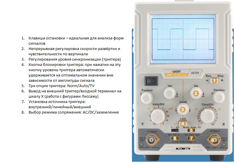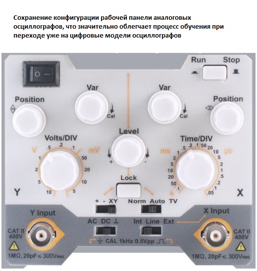 • Простая панель управления, схожая с аналоговыми осциллографами