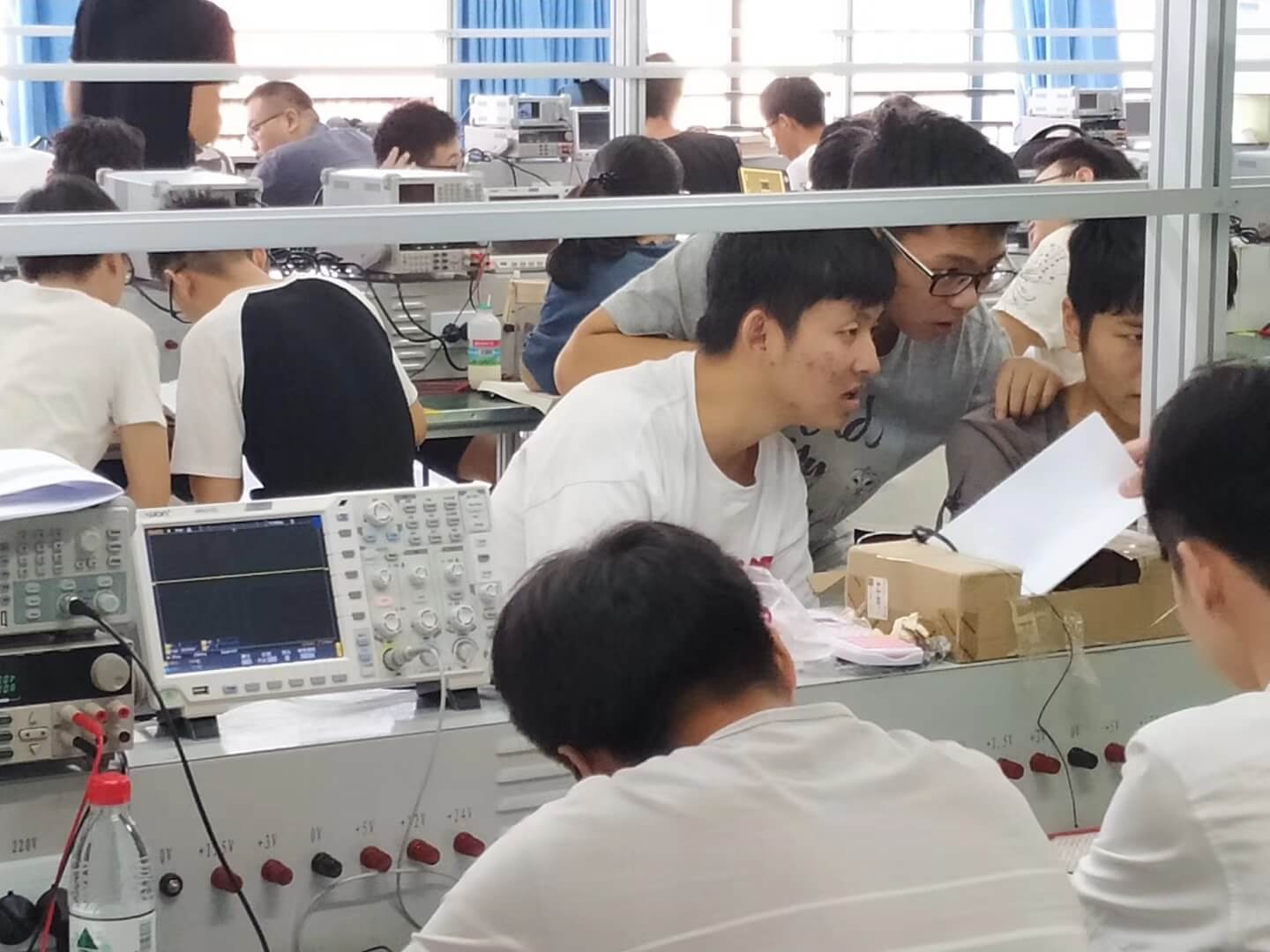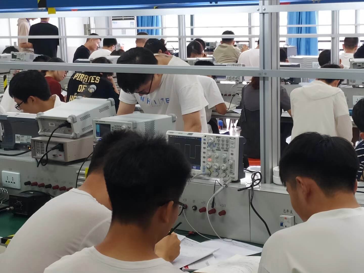 Всекитайский конкурс на лучшую электронную разработку среди студентов практически полностью базировался на продукции компании OWON, в частности осциллографах и функциональных генераторах всего модельного ряда компании. На приводимых ниже снимках это хорошо видно.