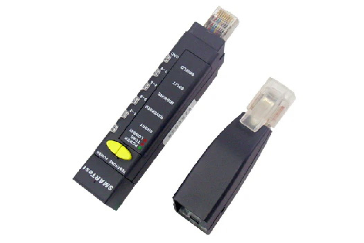 Тестер сетевого кабеля SMARTest с тоновым генератором — первый тестер в виде ручки на рынке. Благодаря компактному дизайну и малому весу его легко носить с собой на любое рабочее место. Он удобно помещается в карман рубашки и при необходимости может быть немедленно доступен. Несмотря на то, что SMARTest имеет карманный размер, он эффективен и эффективен при тестировании на короткие, открытые, перекрестные, обратные и разделенные пары.