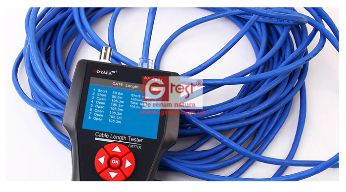 • Максимальное расстояние определения длины кабеля RJ11, RJ45, BNC: 2000 метров