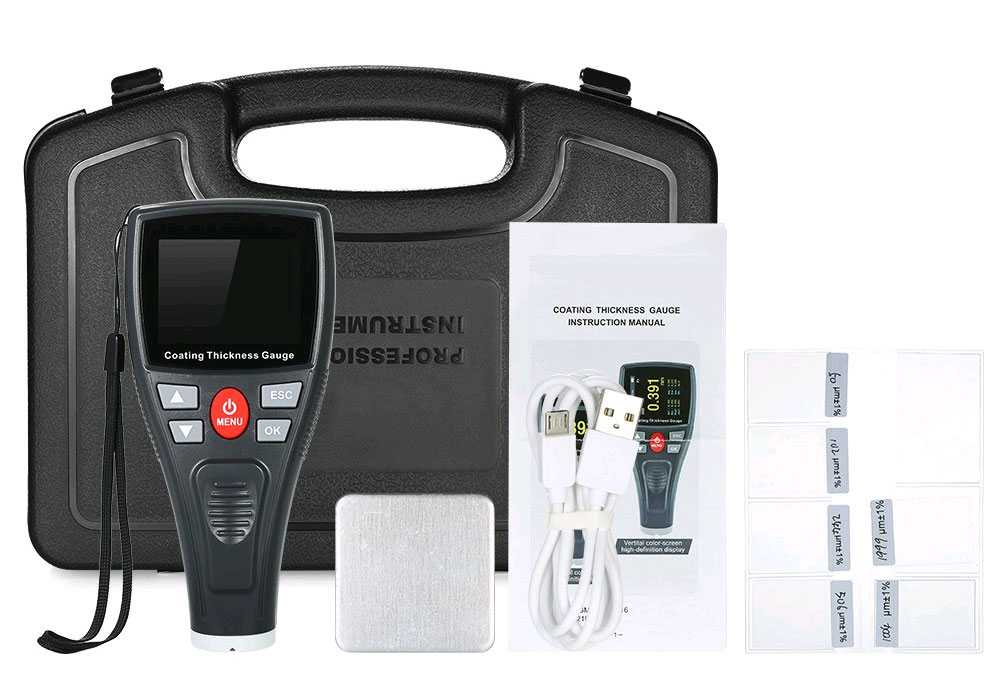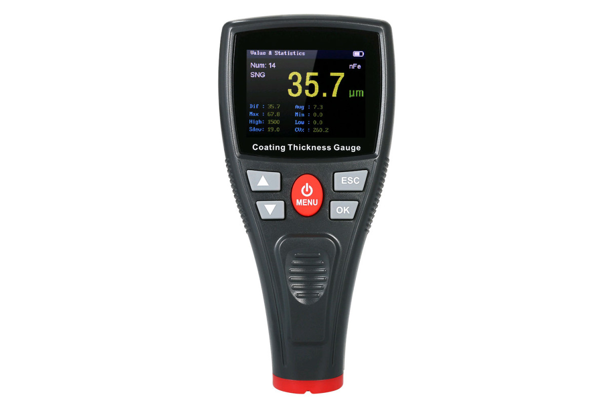 Толщиномер автомобильный модели WT2100, производства компании WINTACT, предназначен для измерения толщины лакокрасочного покрытия. Толщиномер WT2100 выполняет измерения толщины немагнитных материалов (покрытий) на магнитных (Fe) металлических поверхностях. Отличительной особенностью является цветной графический дисплей с режимом автоповорота экрана, многостраничное меню, три режима калибровки (базовый, смещение и коррекция нуля), автоматическое отключение питания.