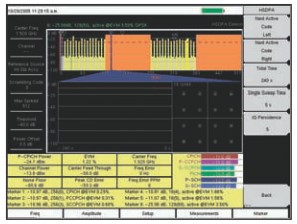 Высокоскоростная пакетная передача данных по нисходящему каналу (HSDPA) задействует до 15 выделенных физических каналов для обеспечения высоких скоростей при передаче данных по нисходящему каналу. Анализаторы Spectrum Master с опцией 65 способны демодулировать сигналы HSDPA и выводить на экран характеристики CDP, вариации мощности в выбранной кодовой области относительно времени, а также комбинации интересующего кода. При этом непрерывно осуществляются стандартные режимы измерений демодулятора W-CDMA, включённые в опцию 45.