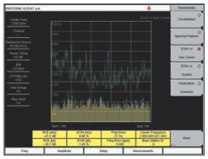 Рис. Дисплей EVM vs Поднесущая представляет значения EVM индивидуальных поднесущих