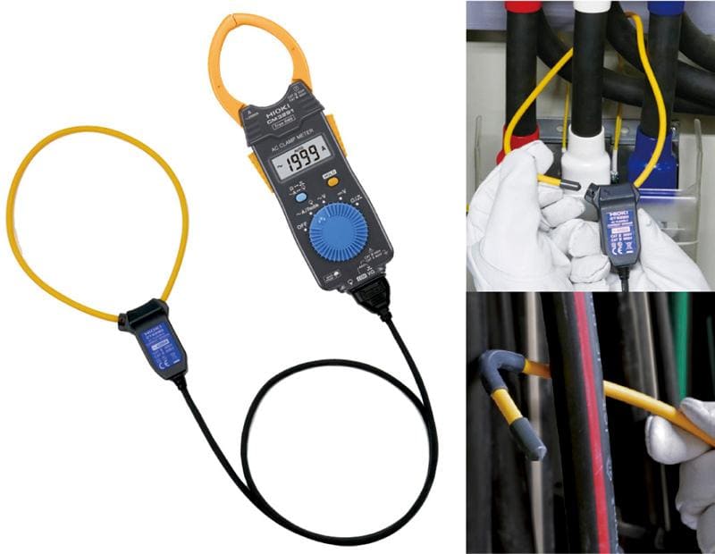 При подключении к дополнительному гибкому датчику тока* CM3291 можно использовать для измерения тока, протекающего в парах проводов или в запутанных или сложно проложенных проводах, вокруг которых ранее было невозможно применить токоизмерительный клещевой датчик.