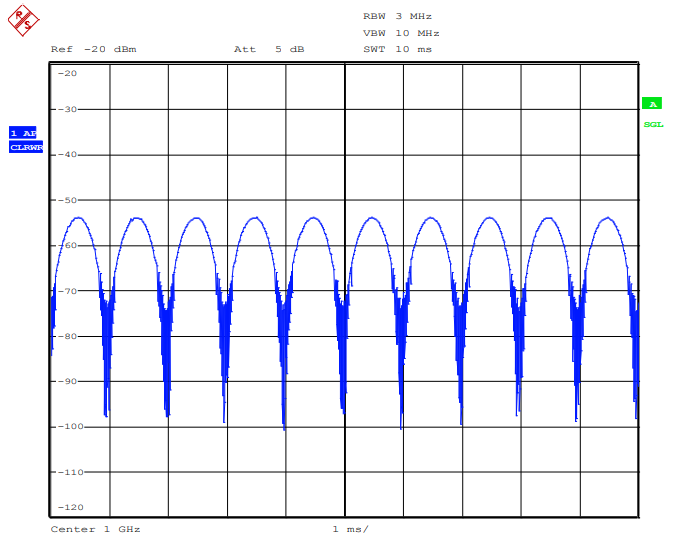 Как мы видим здесь, синусоида искажается, образуя своего рода сердцевидную кривую со слишком низким средним значением на 2,5 дБ. Чтобы избежать этой ошибки измерения, в анализаторах спектра R&S, OWON. SIGLENT используется детектор среднеквадратичных значений (см. [4]).