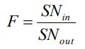 Коэффициент шума F двухполюсной схемы определяется как отношение входного отношения сигнал/шум SNin к выходному отношению сигнал/шум SNout.