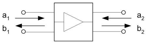 Двухполюсные схемы характеризуются четырьмя параметрами: S11 (входной коэффициент отражения), S21 (коэффициент прямой передачи), S12 (коэффициент обратной передачи) и S22 (выходной коэффициент отражения).
