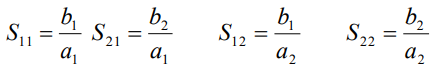 Параметры S можно вычислить из волновых величин a1, b1 и a2, b2 следующим образом: