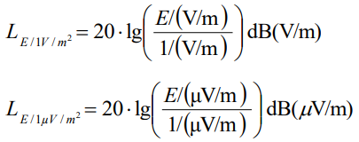 Напряженность электрического поля E измеряется в В/м или мкВ/м. Соответствующими логарифмическими единицами являются дБ (В/м) и дБ (мкВ/м).
