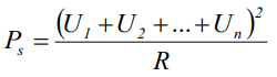 Если мы сложим множество синусоидальных сигналов, пиковое значение теоретически может увеличиться до суммы отдельных напряжений. Тогда пиковая мощность Ps будет равна: