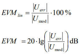 Для определения качества модуляции величина вектора ошибки Uerr привязывается к номинальному значению вектора модуляции Umod. Этот коэффициент известен как векторная ошибка или величина вектора ошибки (EVM) и указывается в процентах или в децибелах.