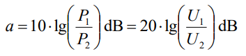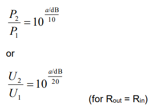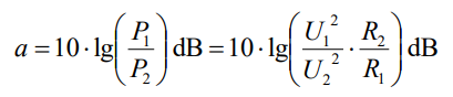 Если выходная мощность P2 двухполюсной схемы меньше входной мощности P1, то логарифмическое отношение P2 к P1 отрицательно. Это известно как затухание или потеря (знак минус опускается).