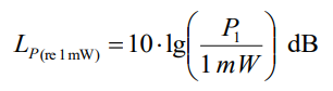 Общее соотношение мощности P1 к P2 теперь становится соотношением P1 к 1 мВт. Логарифмическое соотношение обеспечивает уровень L. Согласно IEC 27 эталонное значение должно быть указано в индексе уровня: