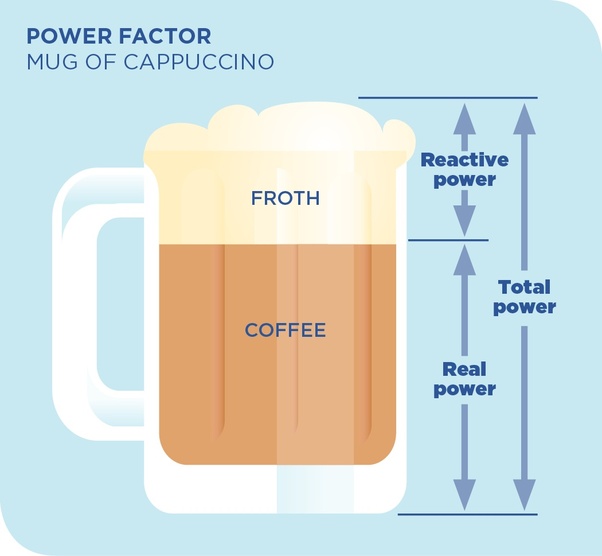 Суть в том, что из-за пены вы получаете меньше кофе, хотя кофейный автомат способен наполнить полную чашку. Аналогично, из-за реактивной мощности «генерация электроэнергии» становится менее эффективной, поскольку её полный потенциал не используется.