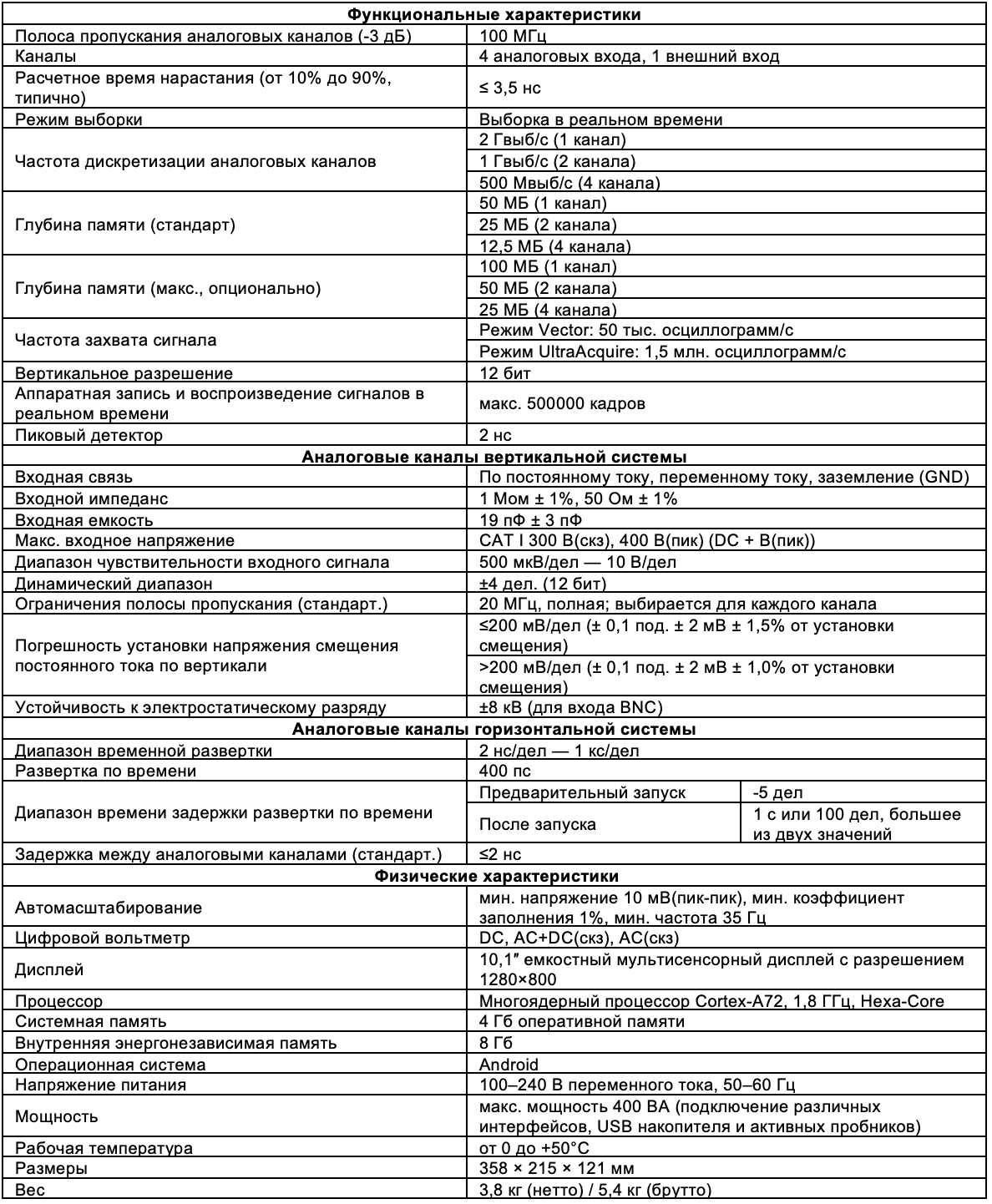 - Полоса пропускания аналоговых каналов: 100 МГц