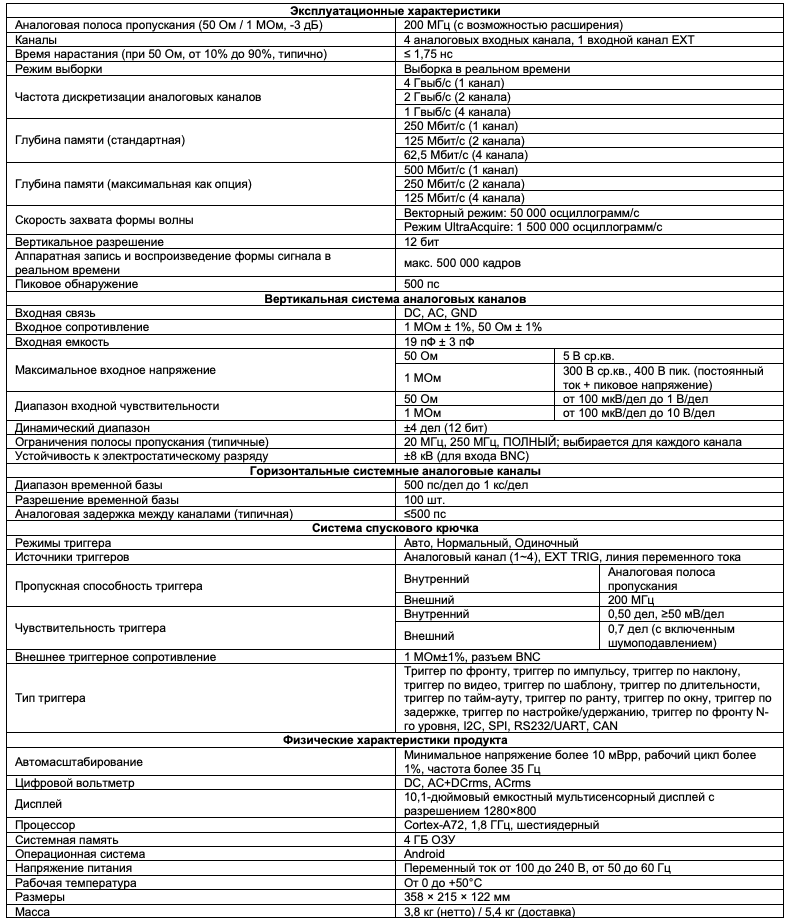 - Частота дискретизации в реальном времени до 4 Гвыб/с