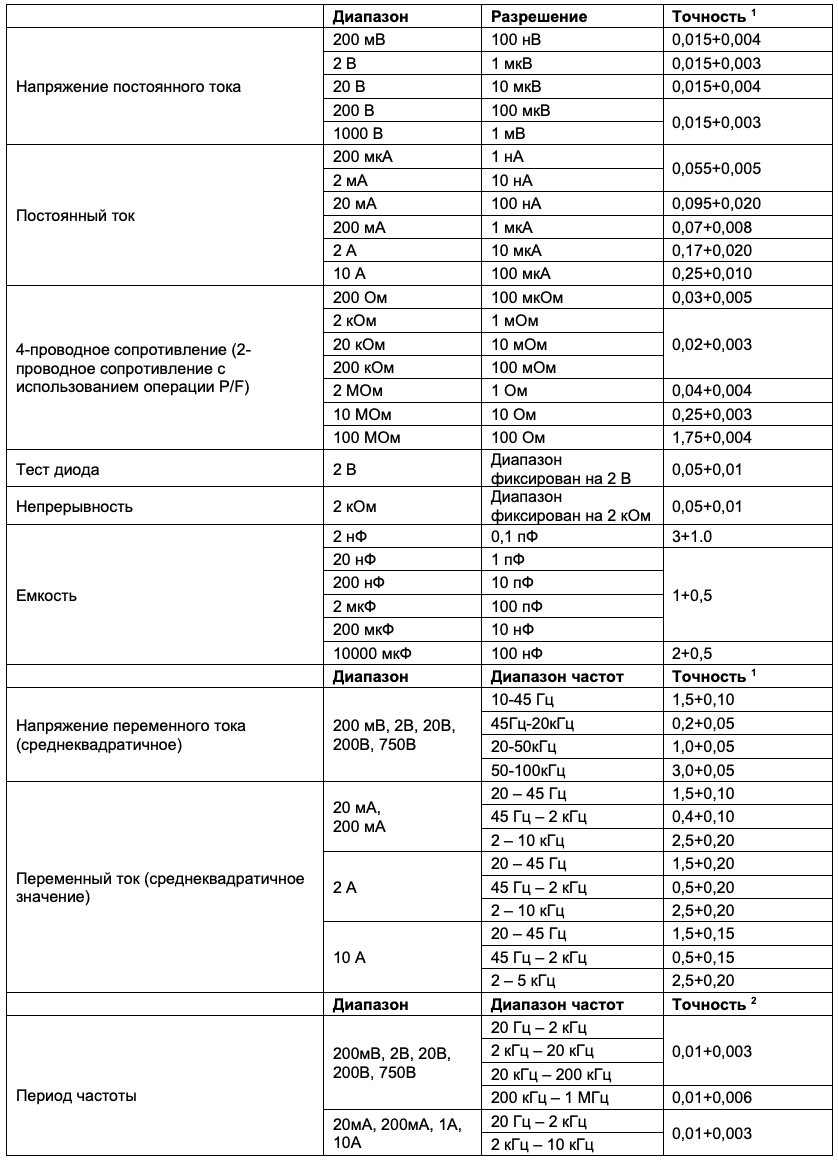 - Разрешение: 5½ разряда и 240 000 отсчетов