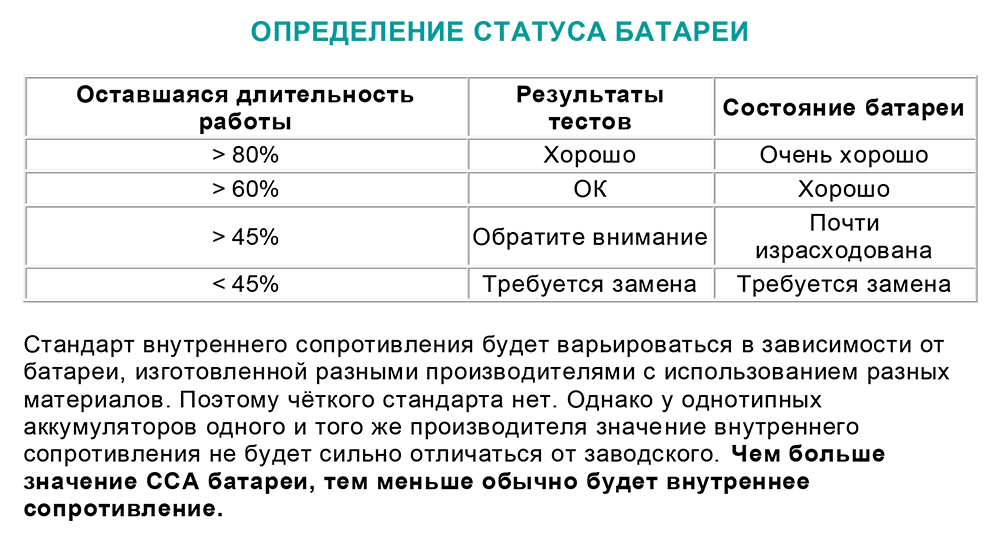 - Проверяются все системы классификации аккумуляторов — CCA, BCI, CA, MCA, JIS, DIN, IEC, EN, SAE, GB