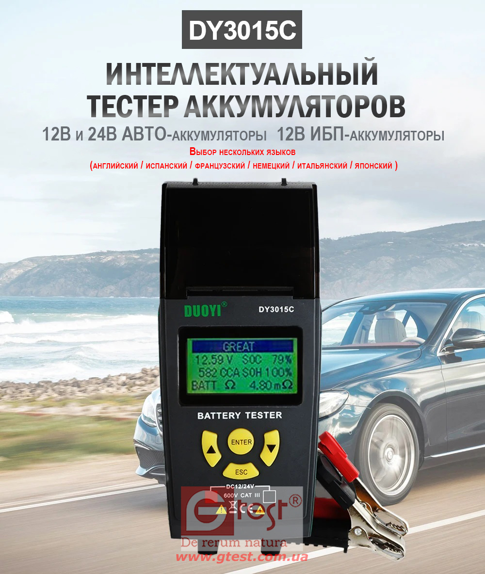 DUOYI DY3015C (12 В/24 В) Тестер автомобильных аккумуляторов с принтером в составе