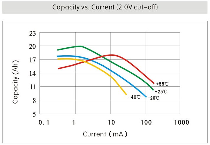 (типовые значения после хранения батареи 1 год при температуре 30ºС)