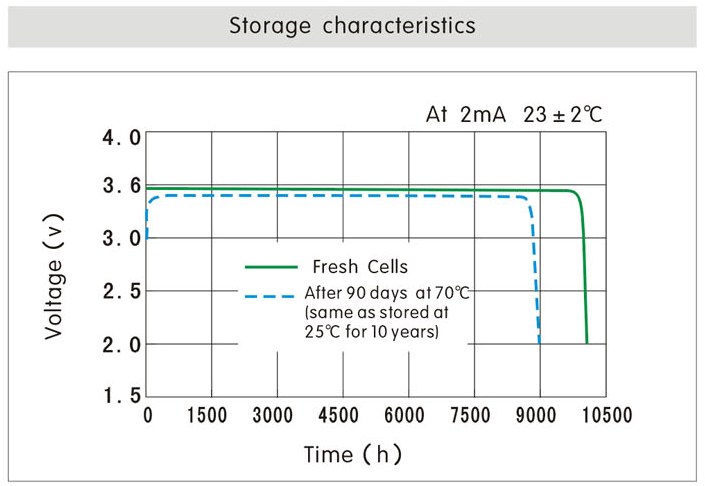 К уникальным особенностям батареи ER34615H-T относят возможность длительного хранения благодаря низкому саморозряду (при 20 °С составляет только 1% в год).
