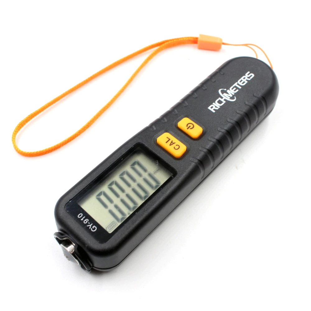 Отличительной особенностью толщиномера GY910 является не только компактность, но и функциональность позволяющаяя эффективно измерять толщину краски как на магнитных так и на немагнитных металлах (автометический выбор). Имеет режимы установки нуля и калибровки для магнитных  и не магнитных металлов. Тестер толщины лакокрасочных покрытий GY910 с успехом применяется для проверки кузовных деталей автомобилей на наличие скрытых повреждений и при контроле лакокрасочного покрытия. Использование автомобильного толщиномера позволит вам найти и выявить все произведенные кузовные ремонты  и восстановления лакокрасочного покрытия.