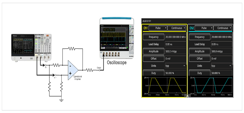 Измерение фазового сдвига, усиление, перерегулирование, быстрота нарастания операционных усилителей и буферных схем.
