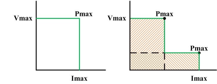 Иллюстрация выходного диапазона напряжения и тока для диапазона с двумя