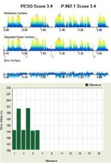 DSLA измеряет значение уровня активной речи в соответствии с ITU-T P.56 и производит объективный расчет оценки качества речи ITU-T P.862 (PESQ) плюс улучшенный прогноз MOS в соответствии с ITU- T P.862.1.