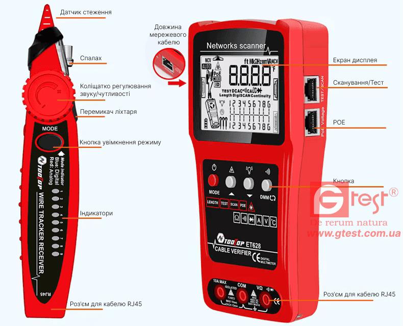 ET628 Тестер-трекер длякабеля с ЖК-дисплеем и VFL (активировать гиперссылку)