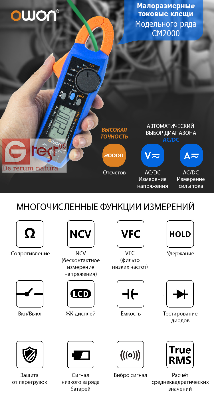 +20000 отсчетов истинных среднеквадратичных токоизмерительных клещей с автоматическим диапазоном