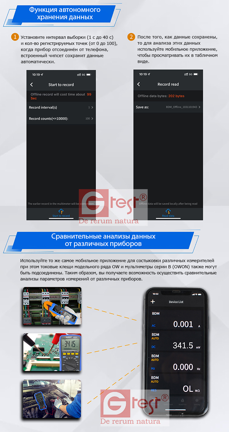 + Поддержка функции записи, запись и анализ измеренных значений, совместное использование записанных данных и совместная работа (2100B)