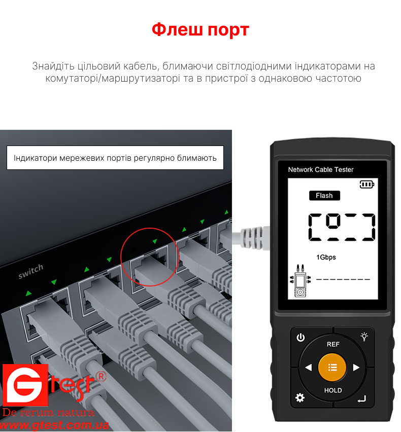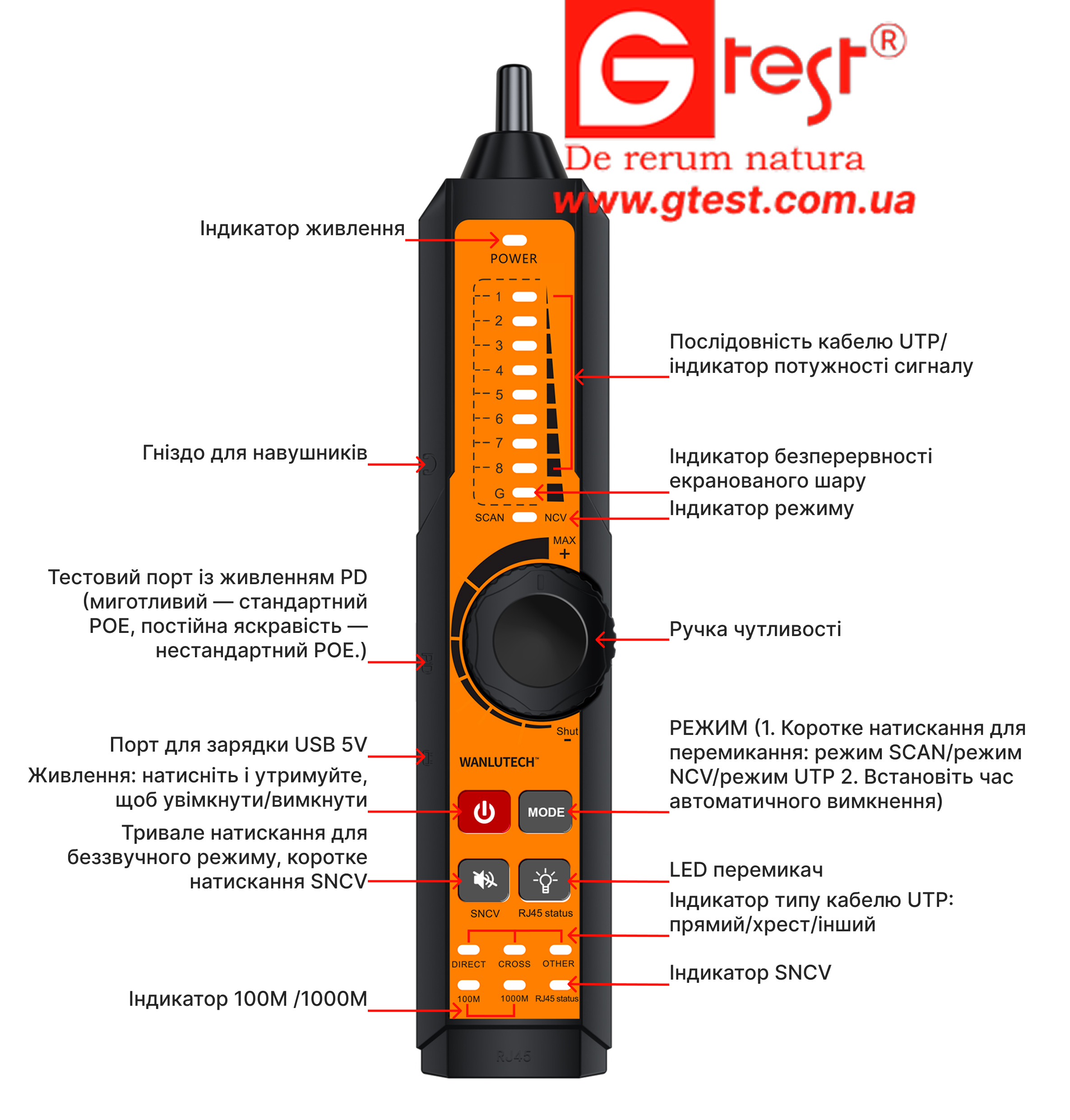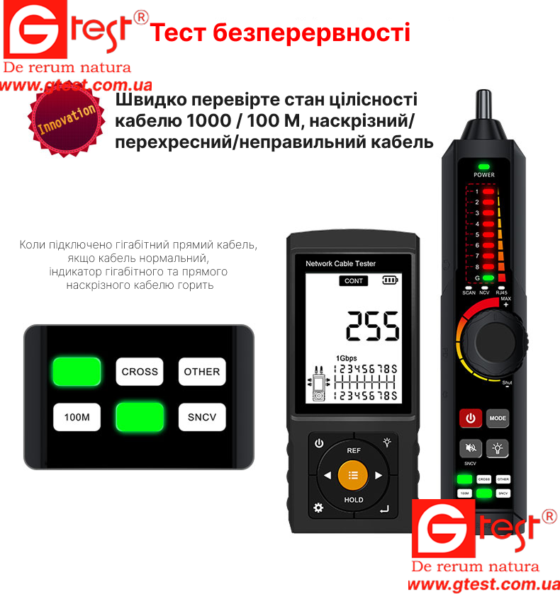 - Трассировка кабеля: цифровой кабельный трассировщик с защитой от помех, поддерживает режимы экранированного кабеля UTP/STP.