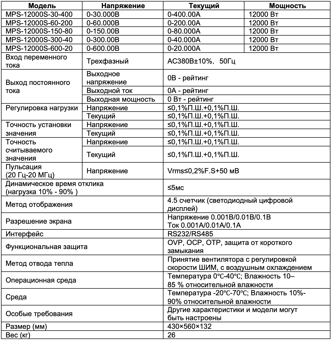 Программируемый источник питания постоянного тока серии MPS-12000S имеет одновременный пятизначный дисплей напряжения и тока. Применена ШИМ-модуляция и схема усиления с высоким коэффициентом усиления. Ключевые компоненты импортируются для обеспечения длительной работы при полной нагрузке. Также есть функция удаленной компенсации напряжения, которая обеспечивает точность использования.
