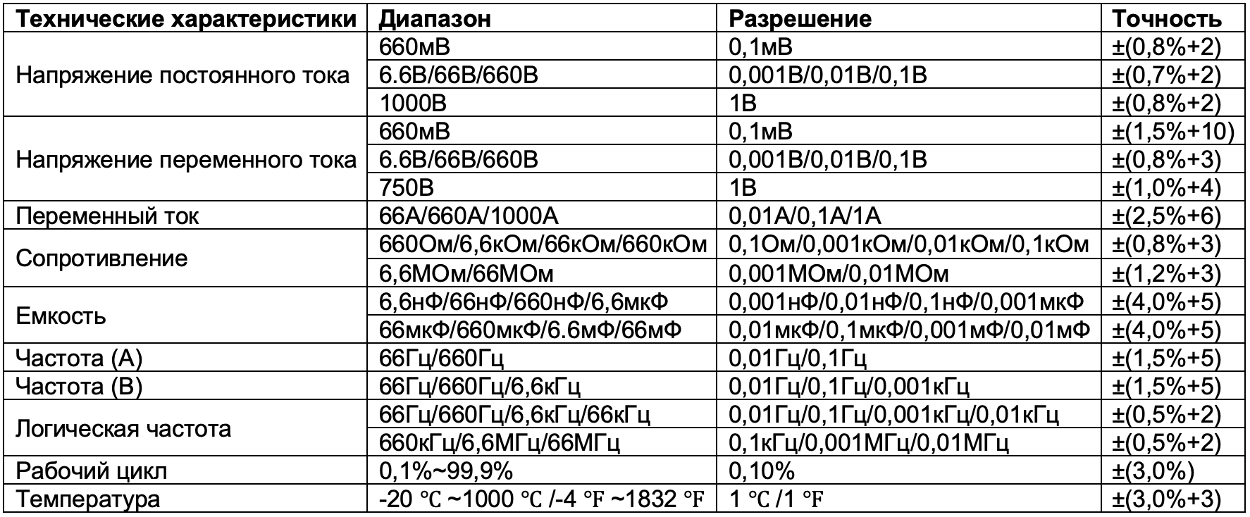 - Уровень безопасности: CAT III 1000 В / CAT IV 600 В