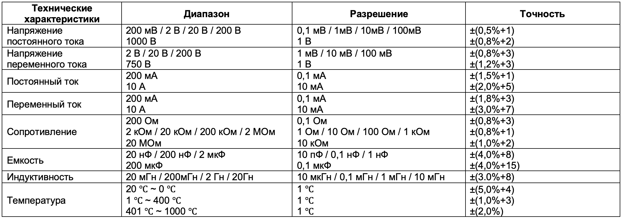 • Рейтинг безопасности: CAT II 1000 В / CAT III 600 В