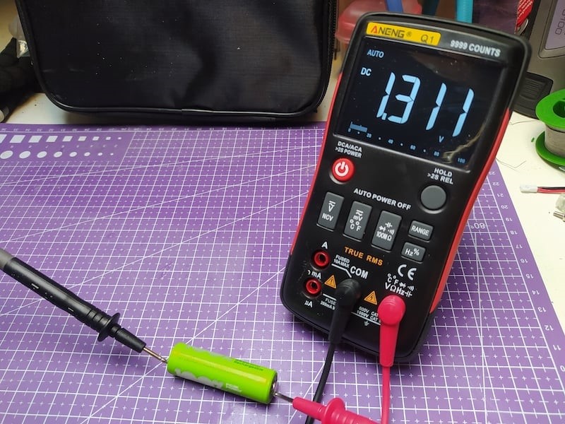 Измерения постоянного напряжения иногда могут иметь и другие применения. Одно из них, которое мы часто используем, — это проверка полярности элементов. Хорошим примером является то, что некоторые батареи не имеют отличительных признаков на обоих концах, и может быть сложно определить, какой конец есть какой. Если вы измеряете напряжение такой батареи, скажем, ячейки 18650 без маркировки, если вы подключите положительный щуп к неизвестному концу ячейки, и это окажется отрицательным концом, все, что произойдет, — это напряжение батареи будет представлено как отрицательное значение. Это все равно даст правильное числовое значение напряжения, но скажет вам, что щупы подключены наоборот, это означает, что вы можете правильно определить полярность батареи.