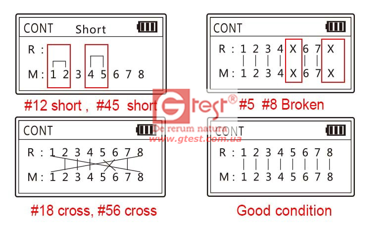 Проверка обрыва, короткого замыкания, перекрестие и т. д. для кабелей STP, UTP LAN.