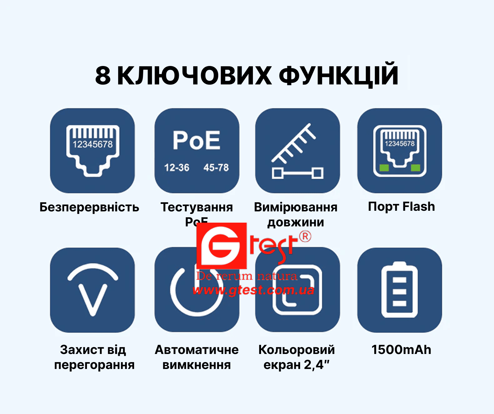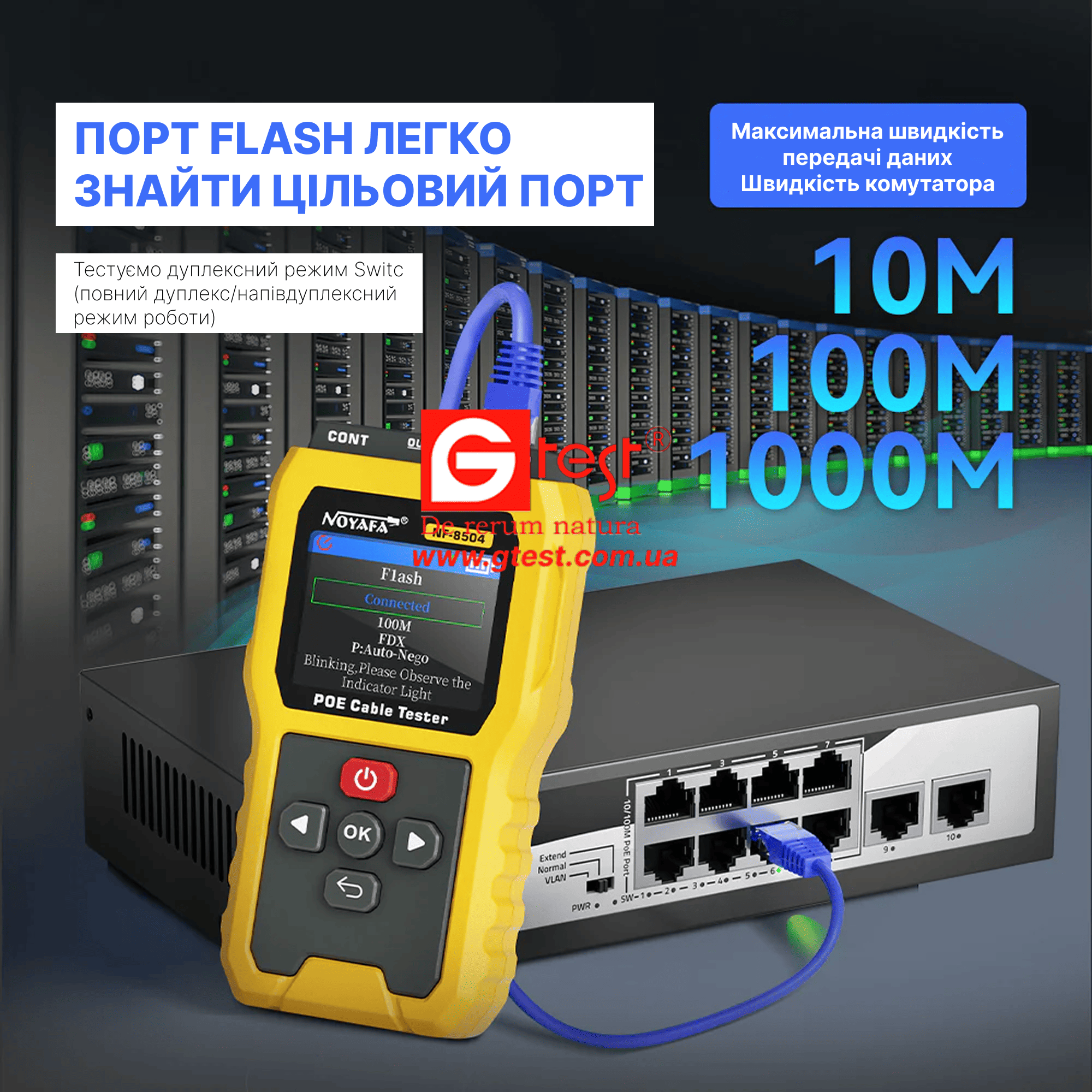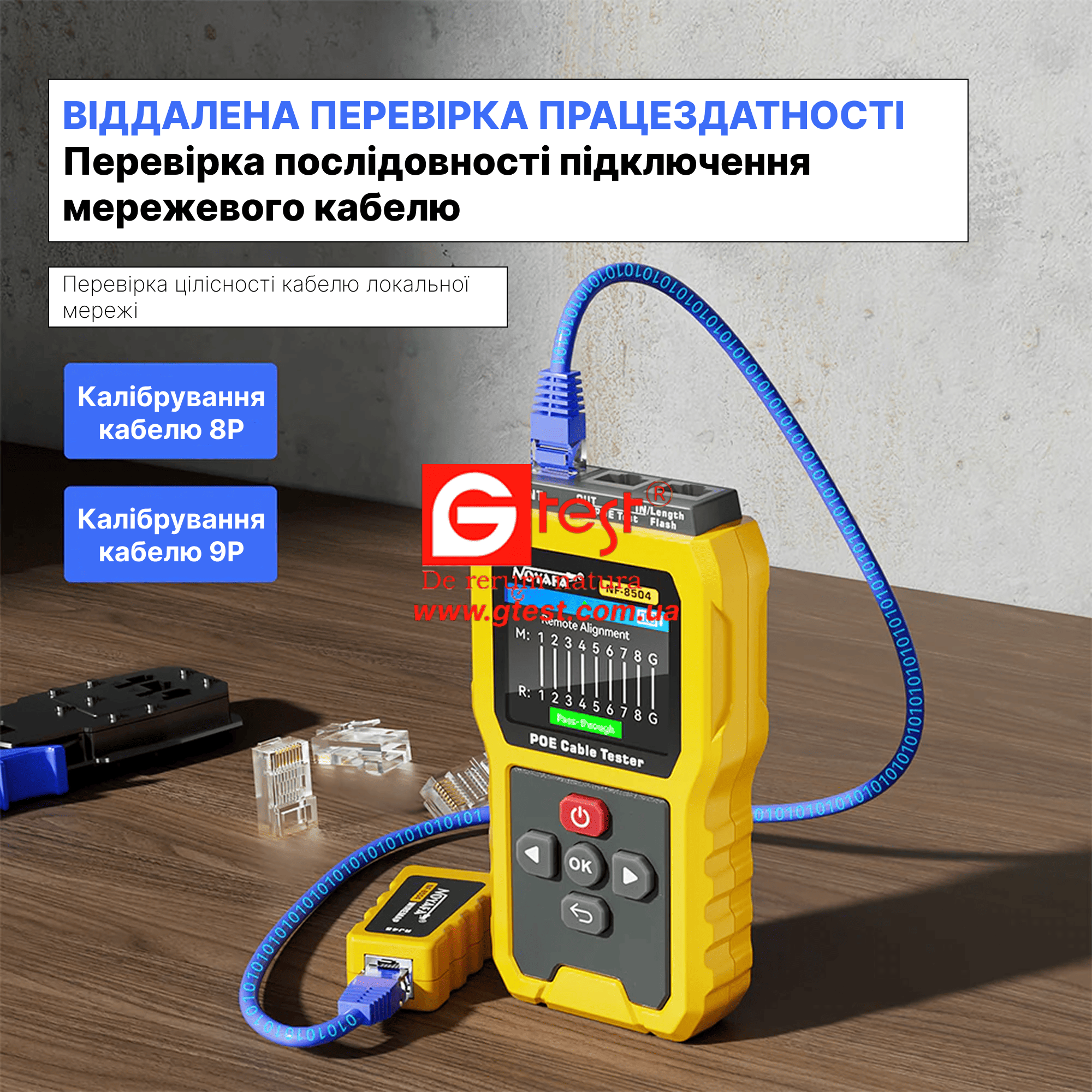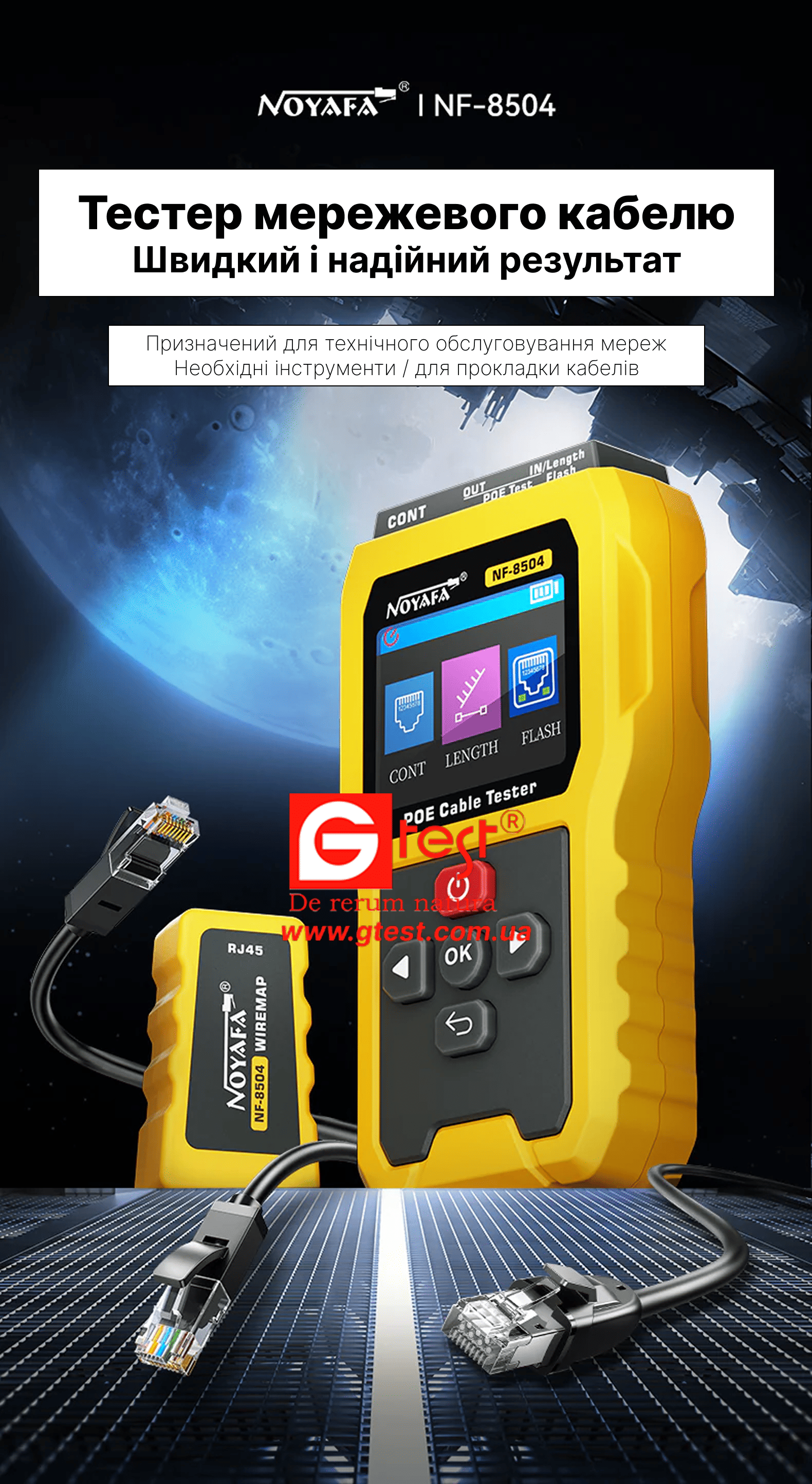 - Целостность и схема разводки: мгновенная проверка каждой пары кабелей CAT5/CAT6 на предмет обрыва/короткого замыкания или неправильной разводки, что позволяет избежать простоев.