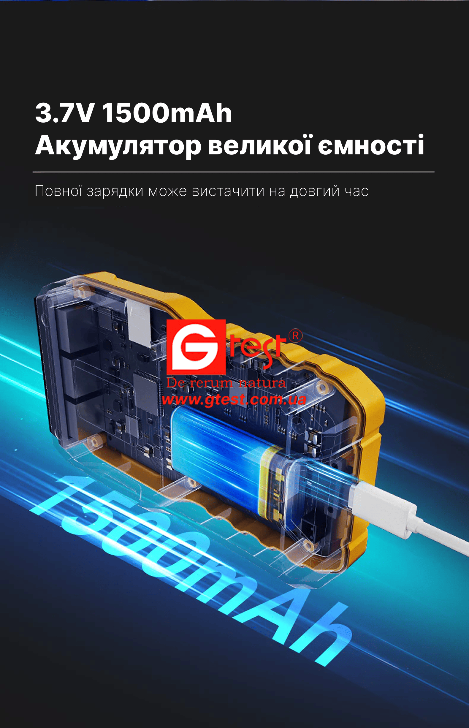 - Аккумуляторная батарея 3,7 В 1500 мАч: обеспечивает несколько часов непрерывной работы; зарядка через USB-C означает отказ от одноразовых батареек.
