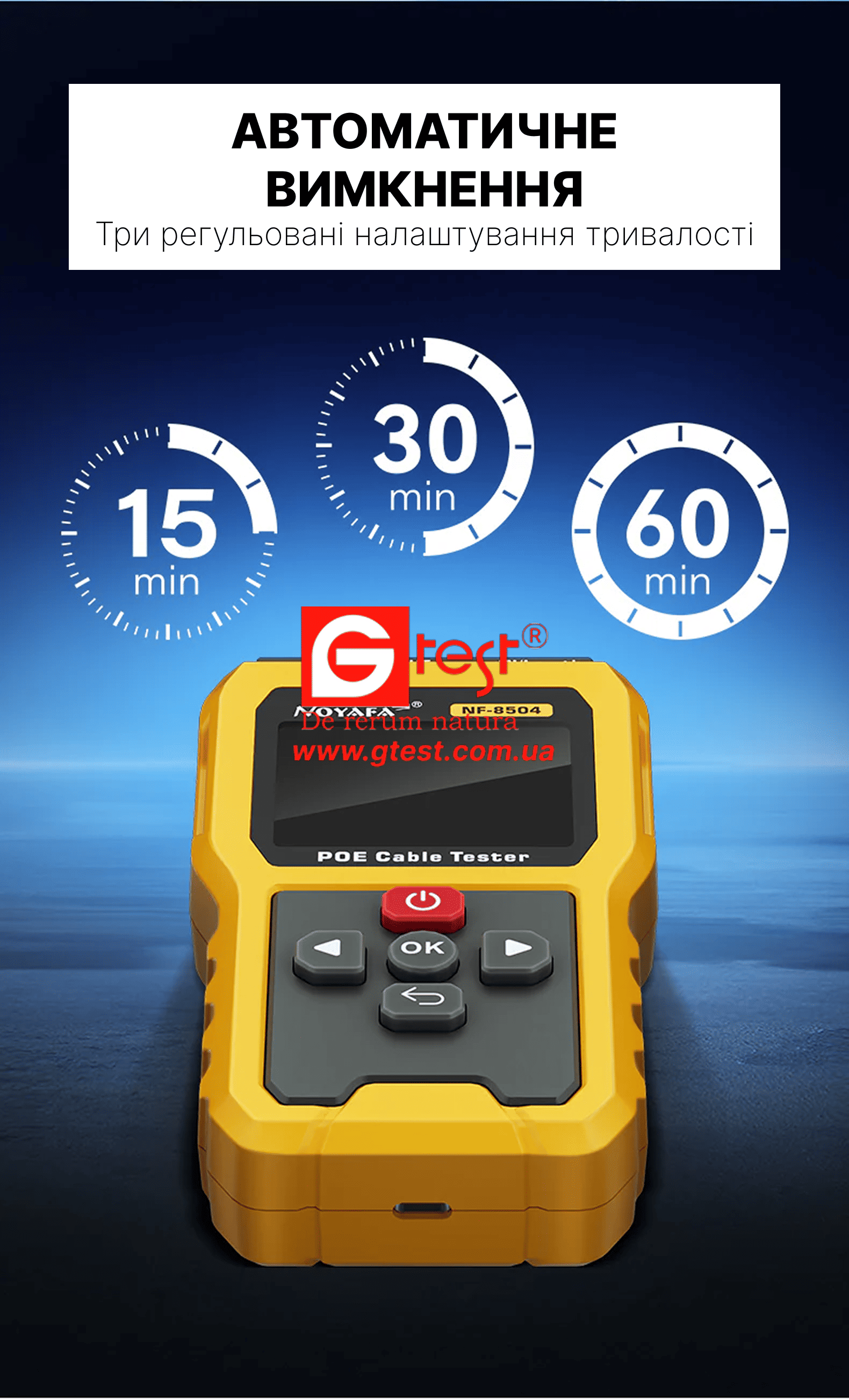 - Автоматическое выключение: экономит заряд батареи, отключая устройство через 5/15/30/60 минут бездействия.
