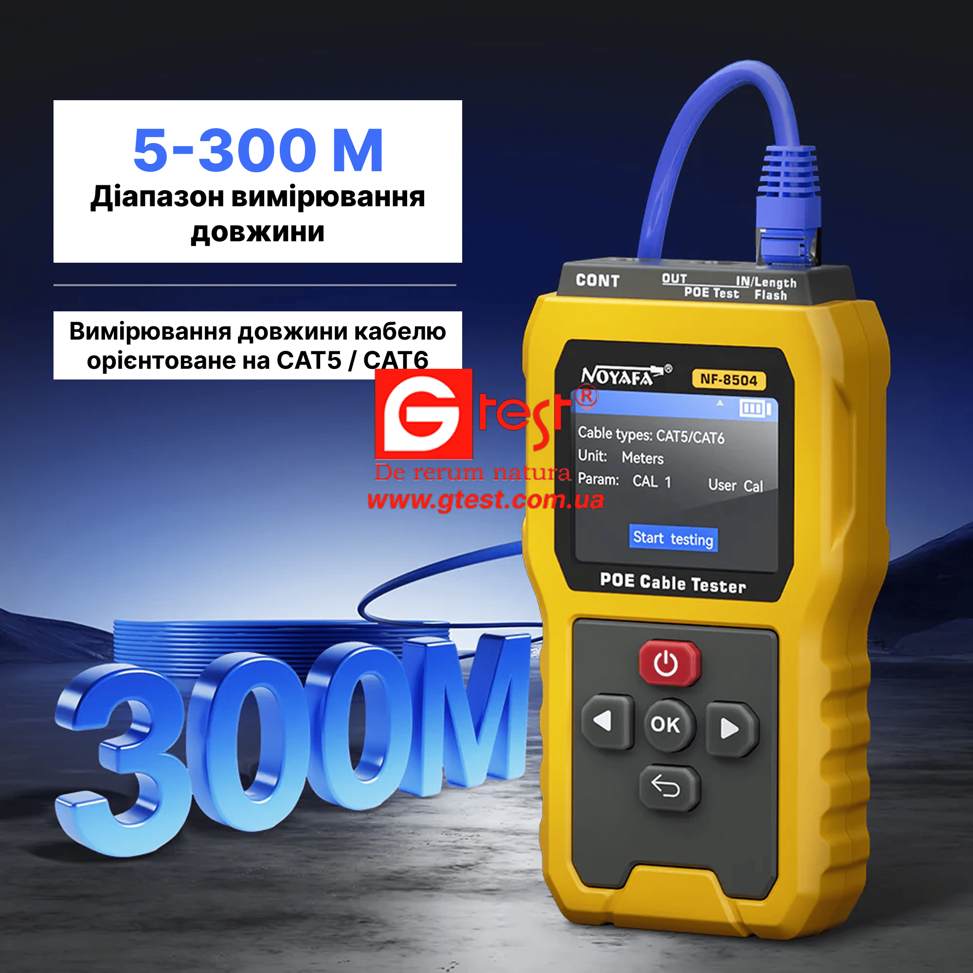 - Измерение длины (5–300 м): определяет обрывы кабеля или расстояние до места неисправности на расстоянии до 300 м, экономя время на прокладку кабеля.