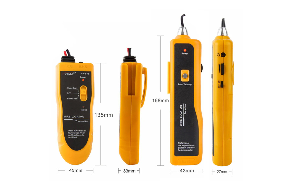 Точное обнаружение проводов: полезно — обнаружение и отслеживание зарытых и скрытых проводов, легкое обнаружение проводов ограждения для домашних животных/электрических/телефонных проводов, металлических труб и коаксиального кабеля.