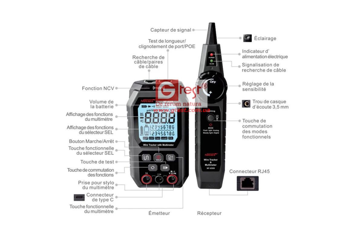 Noyafa NF-8509 Устройство отслеживания проводных сетей + мультиметр