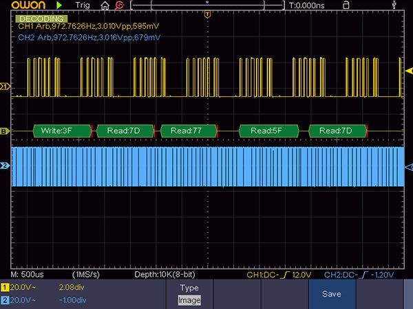предоставляют пять основных вариантов декодирования I2C / RS232 / SPI / CAN /