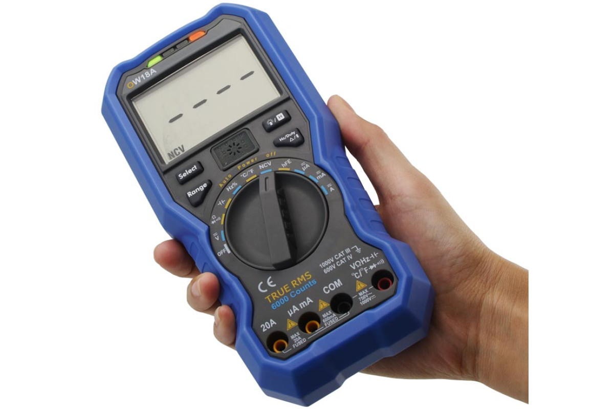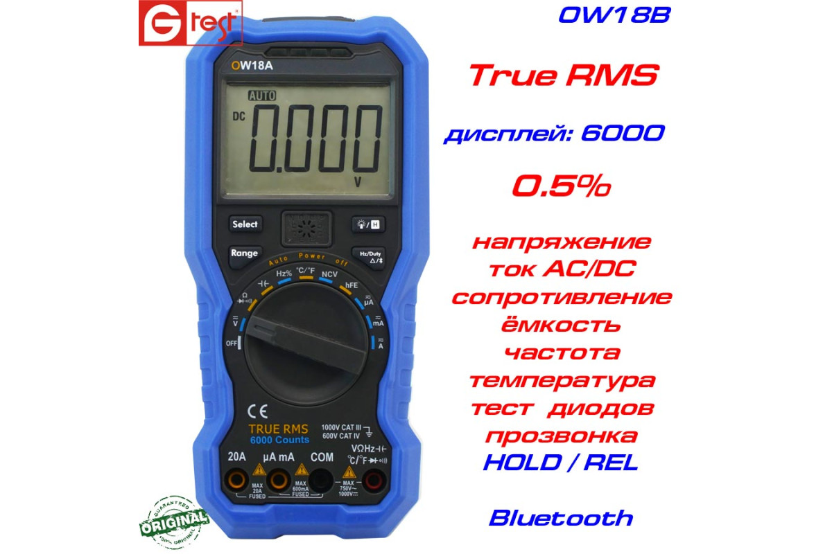 OW18B мультиметр цифровой оснащенный модулем Bluetooth с функцией регистратора (до 10000 записей), производства компании OWON. Профессиональный цифровой мультиметр OW18B предназначен для измерения AC/DC напряжения, AC/DC тока, сопротивления, ёмкости, температуры, частоты, а также тестирование диодов, бесконтактного детектирования высокого напряжения NCV и проверки цепи на проводимость.