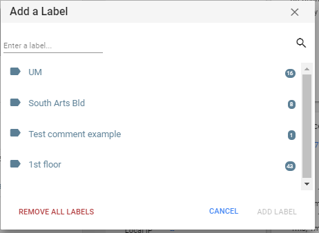 Выбрав результаты теста, нажмите Add a Label в правом верхнем углу и во всплывающем окне выберите Remove ALL LABELS (как показано ниже):