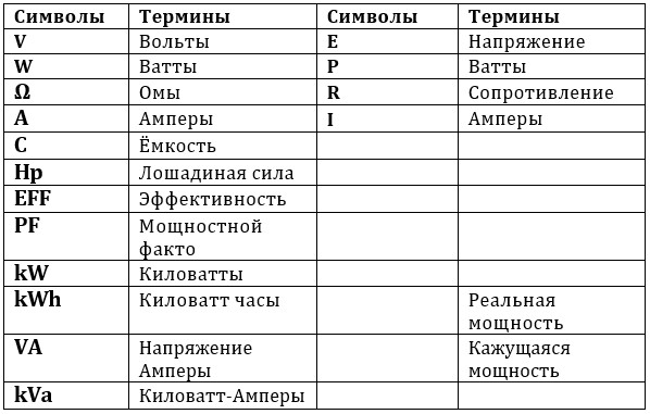 В, вольт — единица электрического давления; один вольт — это разность потенциалов, необходимая для прохождения одного ампера тока через сопротивление в один Ом.