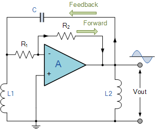 Тем не менее, можно вернуть точно необходимое количество напряжения для колебаний постоянной амплитуды, используя рекуперативную обратную связь. Если мы возвращаем больше, чем необходимо, амплитудой колебаний можно управлять путем смещения усилителя таким образом, что, если амплитуда колебаний увеличивается, смещение увеличивается, а коэффициент усиления усилителя уменьшается.