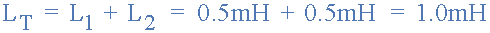 Схема состоит из двух последовательно соединенных катушек индуктивности, поэтому общая индуктивность определяется как: